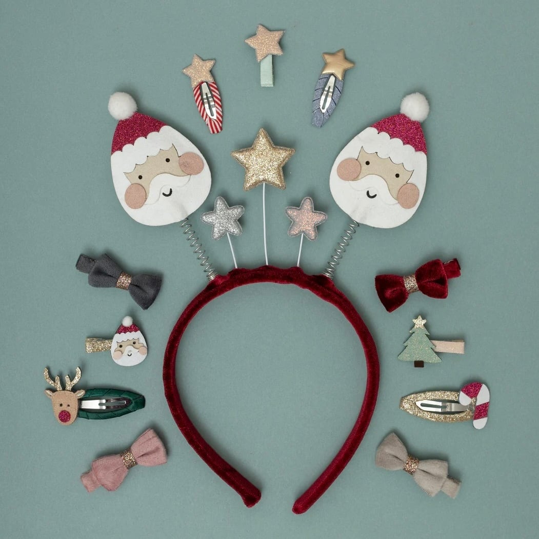 • サンタ、トナカイ、クリスマスツリー、星。すべて柔らかいスエード、グリッター、メタリック素材を組み合わせて作られています。