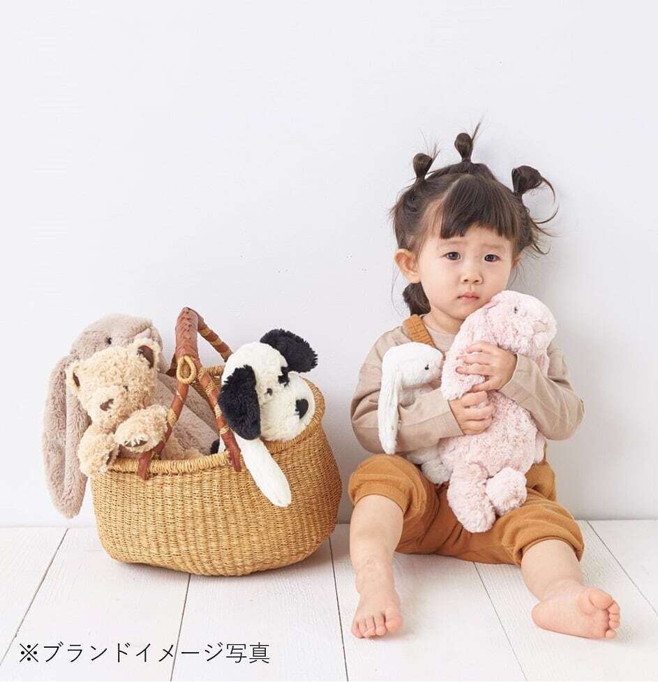 "Jellycat"は思わず抱きしめて頬ずりしをしたくなるような優しい肌触りで、ご自宅用だけでなく、ファーストトイなどのギフトにも選ばれています